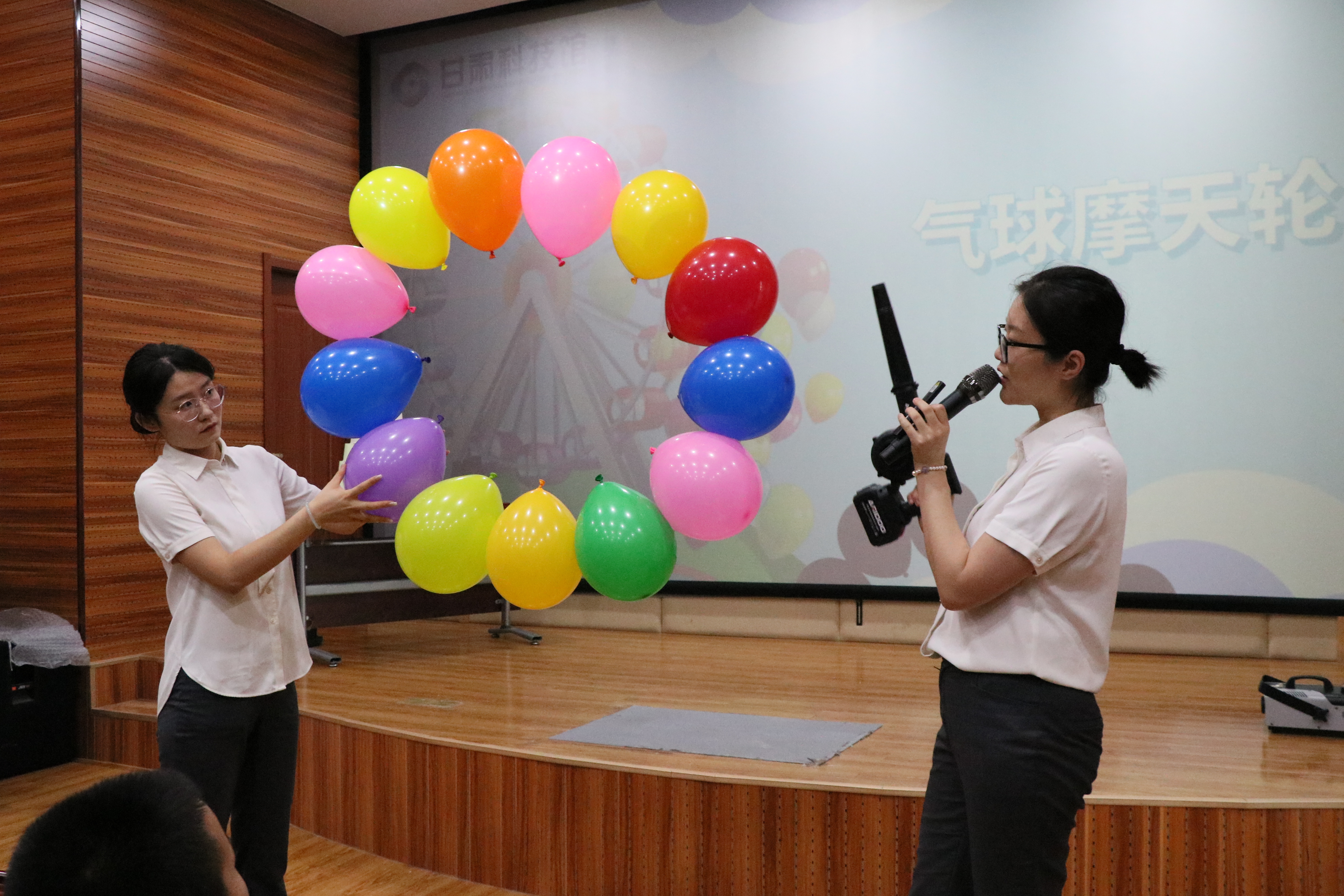 活動(dòng)率先登場(chǎng)的是科普實(shí)驗(yàn)秀《氣流指揮官》與《看不見(jiàn)的大力士》,甘肅科技館的輔導(dǎo)員通過(guò)“肺活量比拼”“氣球懸浮”“空氣炮”等生動(dòng)有趣的實(shí)驗(yàn)演示,將抽象的氣流動(dòng)力學(xué)原理直觀呈現(xiàn),激發(fā)了孩子們濃厚的科學(xué)興趣。
