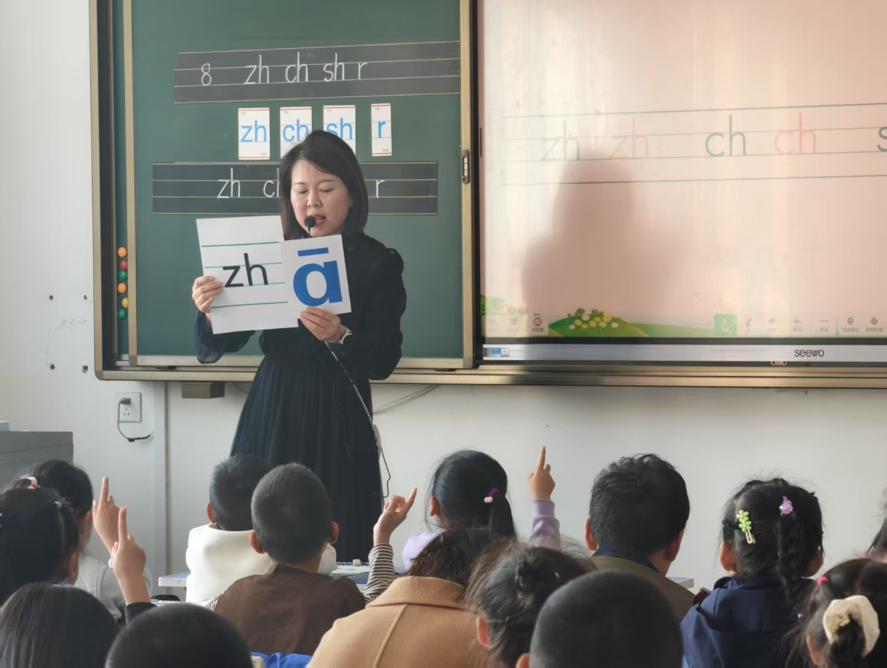 活動(dòng)中,甘泉街小學(xué)何麗娜老師執(zhí)教一年級(jí)拼音課《zh ch sh r》。她通過(guò)生動(dòng)的情境創(chuàng)設(shè)、趣味游戲和多樣化的拼讀訓(xùn)練,引導(dǎo)學(xué)生準(zhǔn)確掌握四個(gè)聲母的發(fā)音與書(shū)寫(xiě),課堂氛圍輕松活潑,充分體現(xiàn)了“在趣中學(xué)、在練中固”的教學(xué)理念,為拼音啟蒙教學(xué)提供了良好示范。二年級(jí)則由白玉香老師帶來(lái)識(shí)字教學(xué)課《葡萄溝》。白老師巧妙運(yùn)用圖文結(jié)合、字理溯源、語(yǔ)境拓展等方式,幫助學(xué)生理解生字含義、掌握構(gòu)字規(guī)律,并引導(dǎo)學(xué)生在朗讀與表達(dá)中鞏固字詞運(yùn)用,課堂扎實(shí)高效,展現(xiàn)了識(shí)字教學(xué)與閱讀理解的自然融合。
